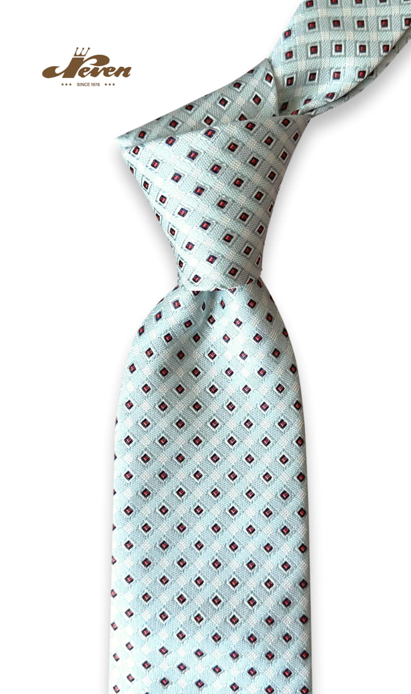 Ova luksuzna kravata izrađena je ručno od najfinije svile, dimenzija 150 cm x 8 cm. Svetlo plava osnova sa decentnim kvadratnim dezenom donosi svežinu i sofisticiranost svakoj odevnoj kombinaciji. Idealna je za poslovne sastanke, svečane prilike i venčanja. Tradicija izrade od 1978. godine garantuje vrhunski kvalitet, bezvremensku eleganciju i dugotrajnost.