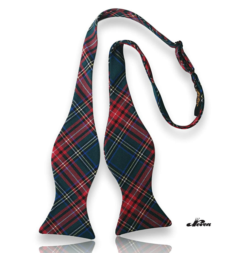 Leptir mašna na vezivanje sa zeleno-crvenim škotskim karo dezenom. Leptir mašna je ručno radjena, materijal je 33% viskoza i 67% poliester. Mašnu je moguće podesiti za različite obime vrata.